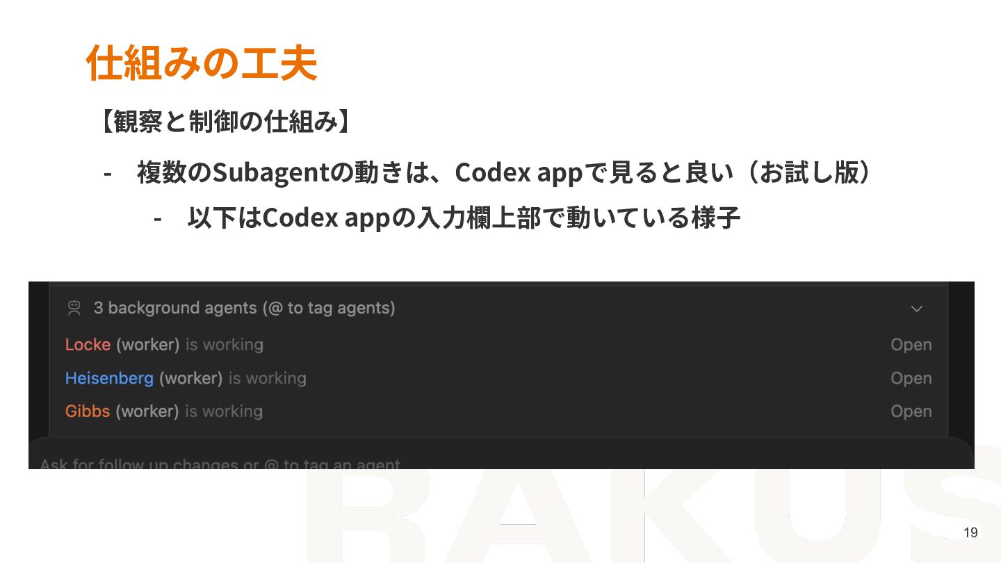- Subagentsには、実装だけでなく品質チェックまで持たせられる - Codexのエコシステムをうまく活⽤し、より良い開発をしましょう!