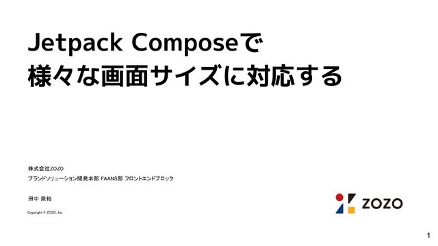 Jetpack Composeで 様々な画面サイズに対応する 株式会社ZOZO ブランドソリューション開発本部 FAANS部 フロントエンドブロック 田中 崇裕