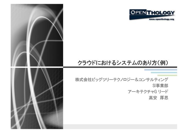 文字情報基盤 p 認証・認可基盤(SAML、OAuth2) p 承認フロー(ワークフロー基盤) p JOB実行基盤 p インフラ統合基盤(IaaS、セキュリティ(監査など)) p データ統合基盤(MDM、データ配信基盤、DWH、オープンデータ) p システム連携基盤 p 帳票基盤 p リリース基盤 p システム管理基盤(構成管理、インシデント管理、サービスデスク管理など) p 開発基盤(ALMなど) p ログ統合基盤 p 運用基盤(監視、性能分析など) p 情報基盤(ポータル等) p IoTプラットフォーム p データ・レイク(AI・BI基盤) Copyright (C) 2018 Atsushi Takayasu All Rights Reserved.