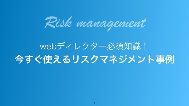 !1 XFCσΟϨΫλʔඞਢࣝʂ ࠓ͙͑͢ΔϦεΫϚωδϝϯτࣄྫ Risk management