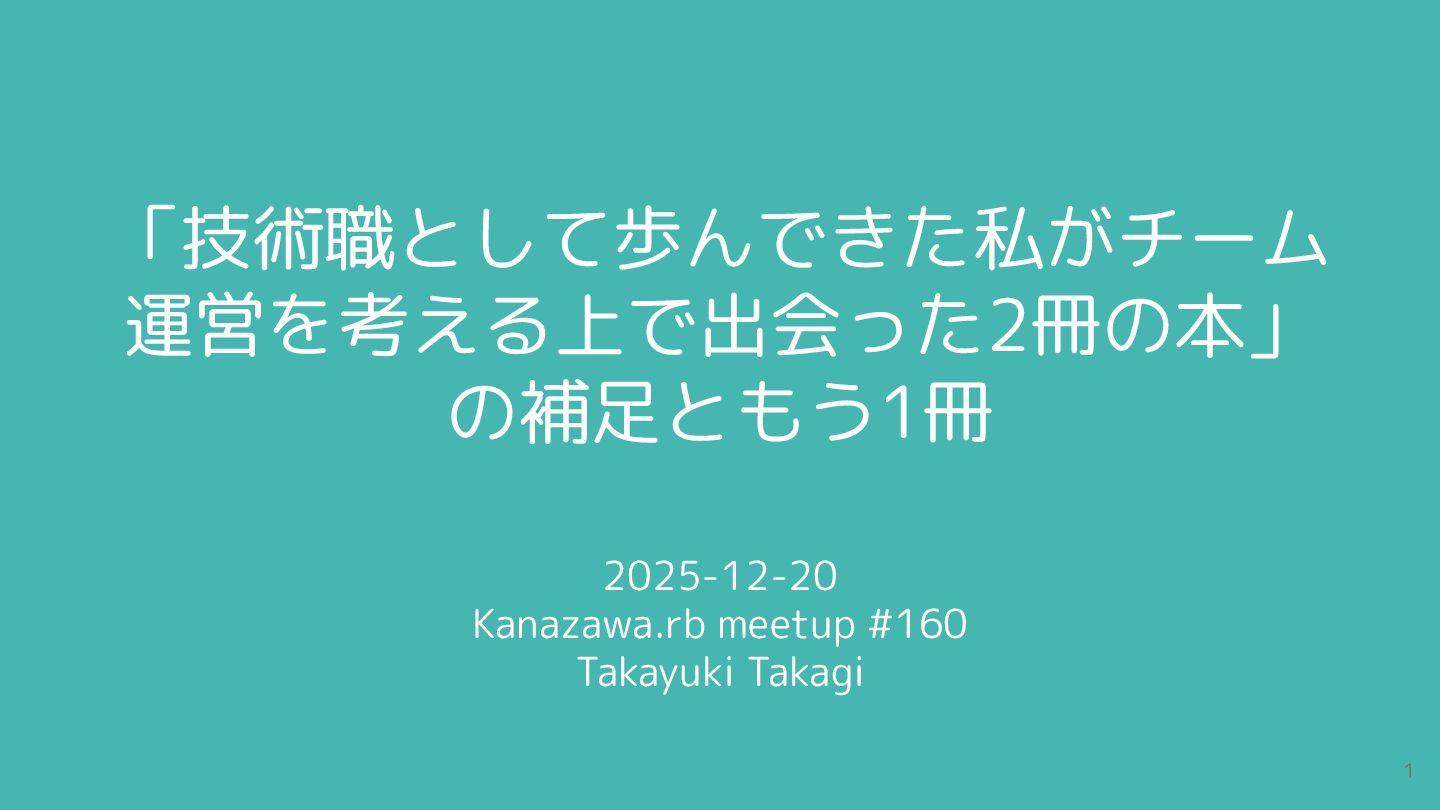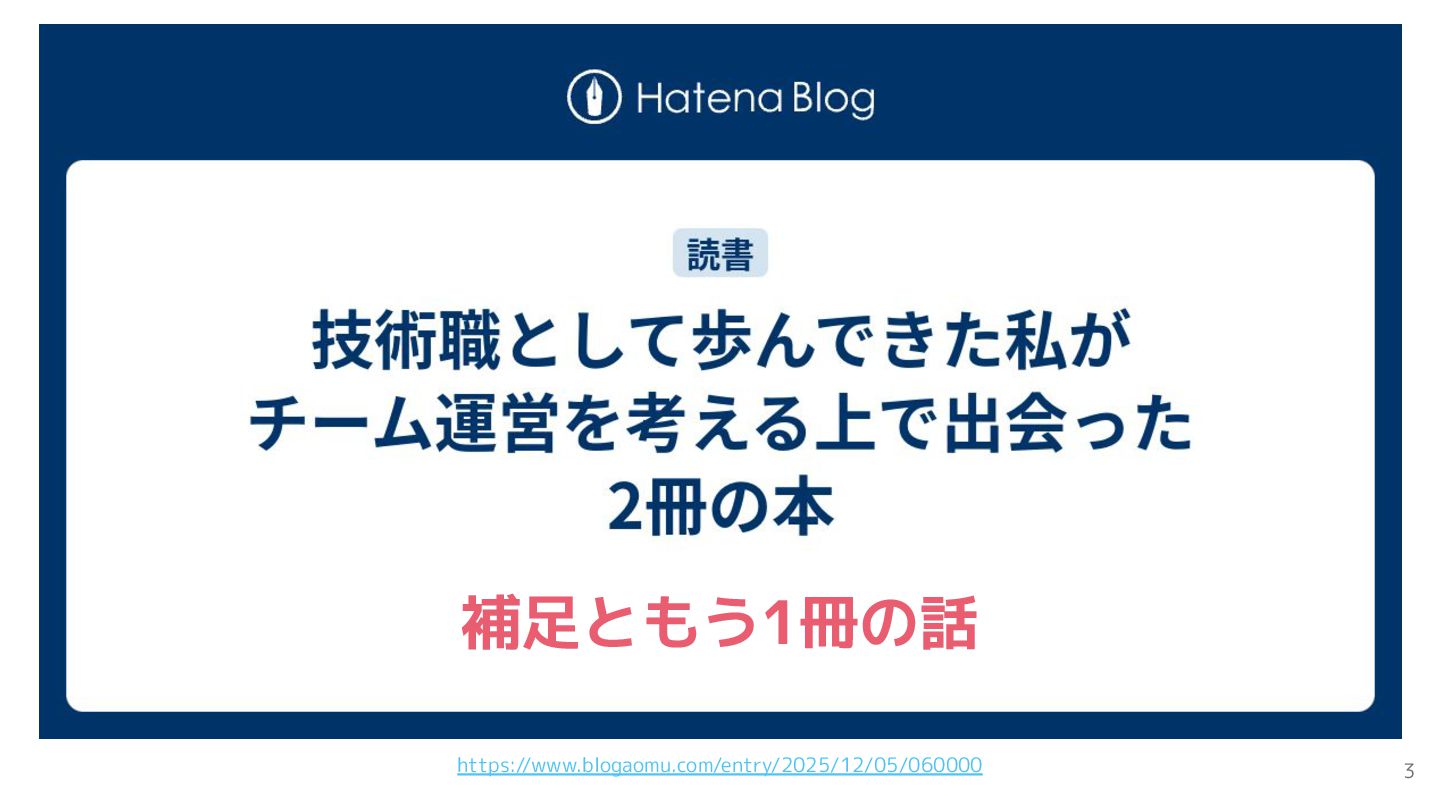 元になったブログ記事: 技術職として歩んできた私がチーム運営を考える上で出会った2冊の本 https://www.blogaomu.com/entry/2025/12/05/060000