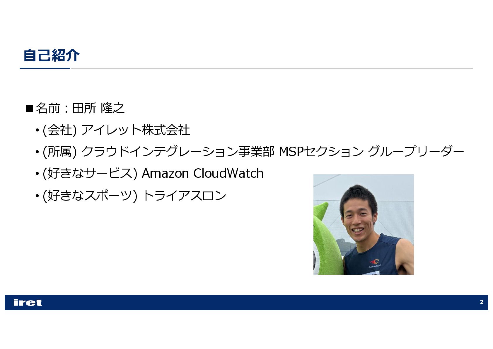 クラウドインテグレーション事業部 MSPセクション グループリーダー • (好きなサービス) Amazon CloudWatch • (好きなスポーツ) トライアスロン