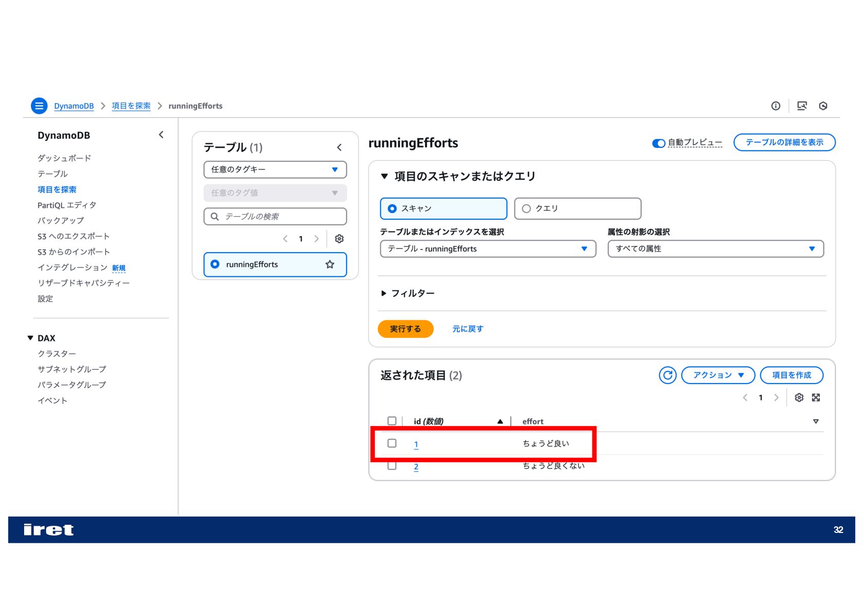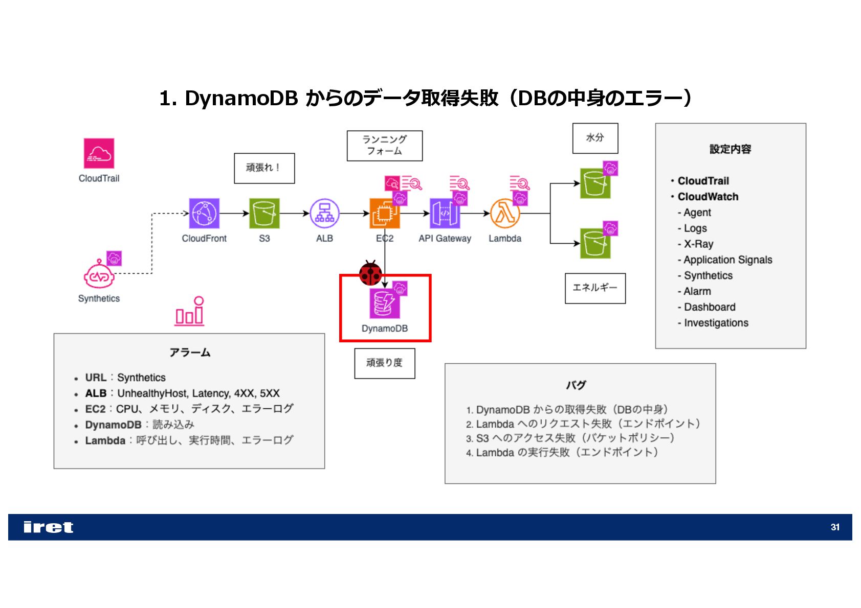 31 1. DynamoDB からのデータ取得失敗(DBの中⾝のエラー)