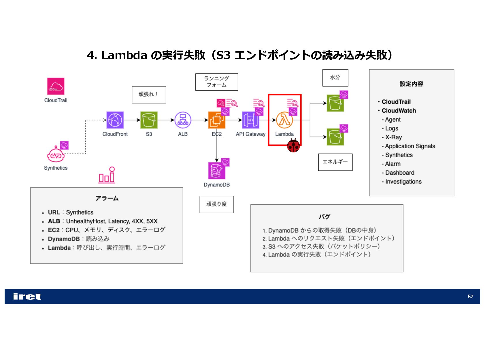57 4. Lambda の実⾏失敗(S3 エンドポイントの読み込み失敗)