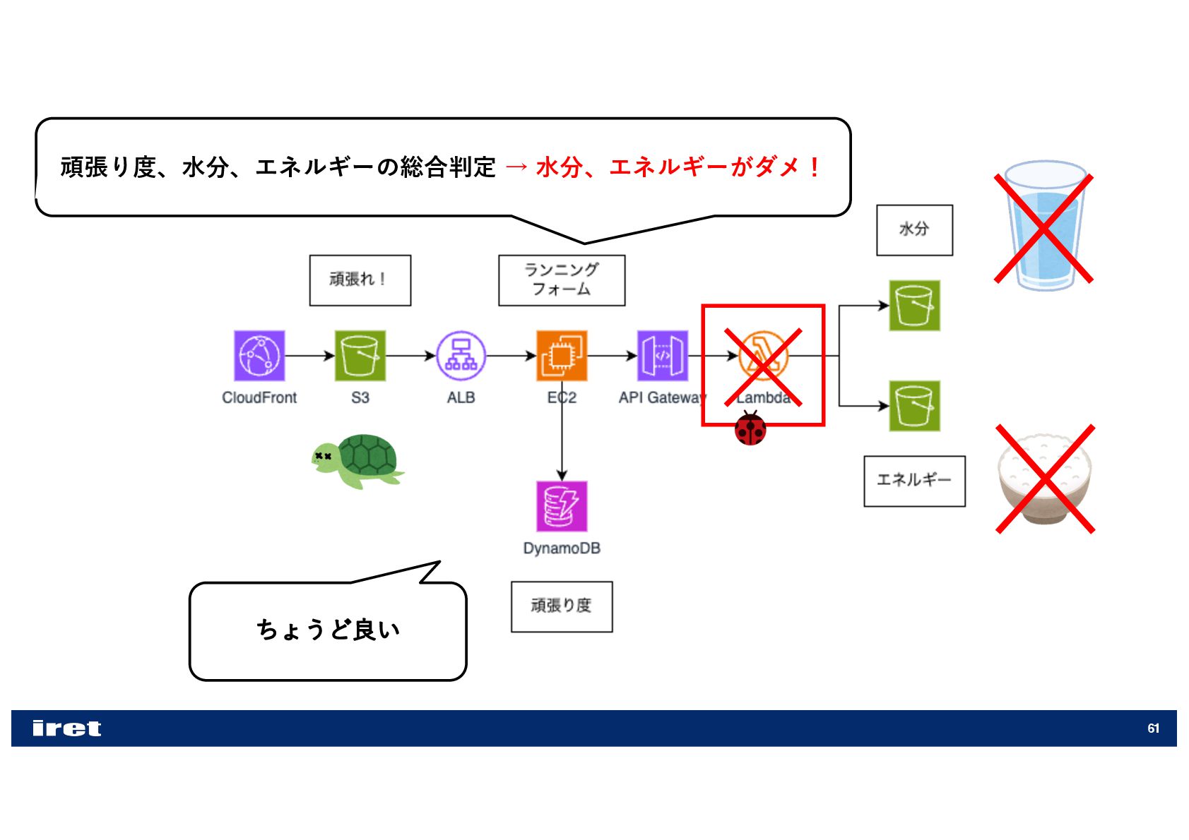 61 頑張り度、⽔分、エネルギーの総合判定 → ⽔分、エネルギーがダメ!