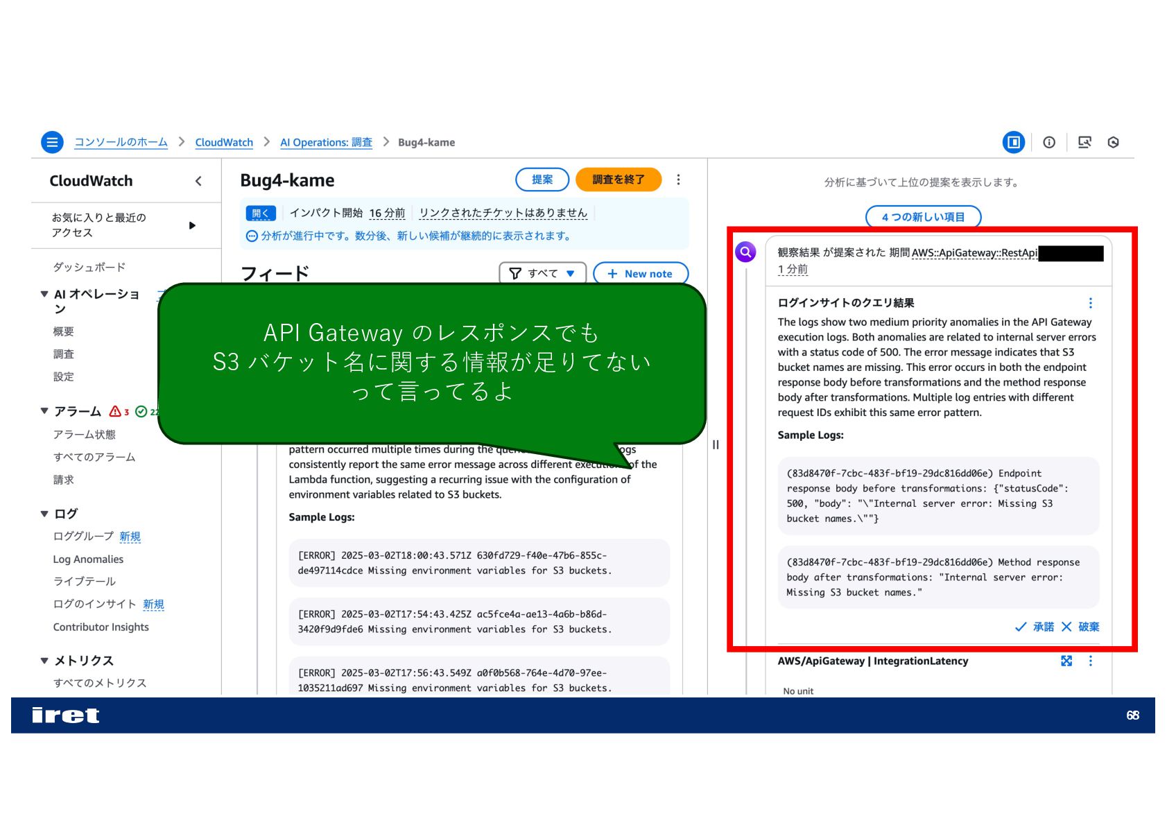68 API Gateway のレスポンスでも S3 バケット名に関する情報が⾜りてない って⾔ってるよ
