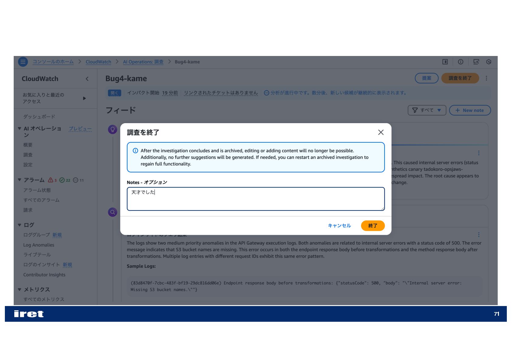 OpsJAWS Meetup33 AIOps もしもマラソンランナーが operational investigations を 有効化したら