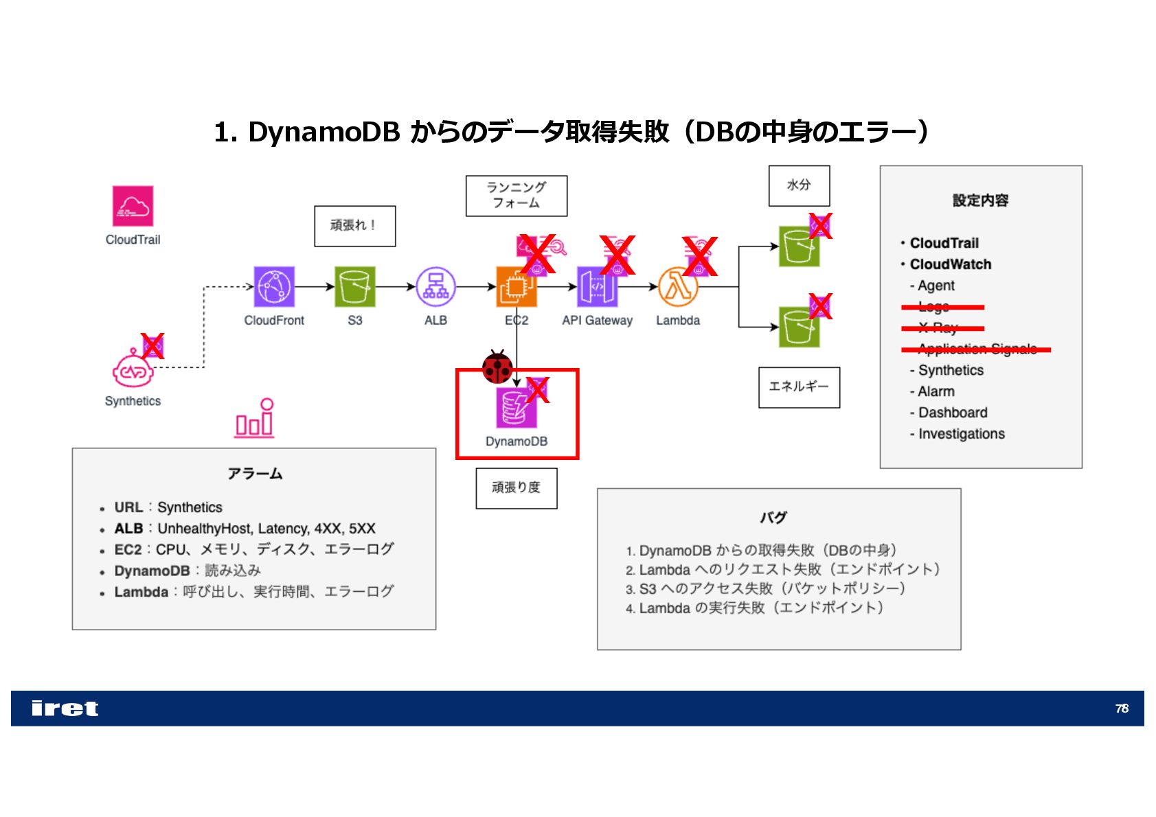 78 1. DynamoDB からのデータ取得失敗(DBの中⾝のエラー) x x x x x x