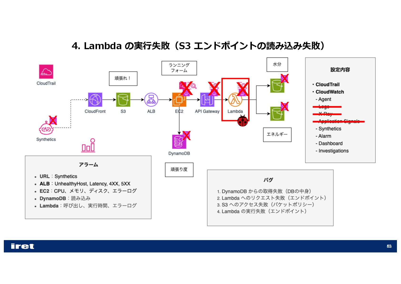83 4. Lambda の実⾏失敗(S3 エンドポイントの読み込み失敗) x x x x x