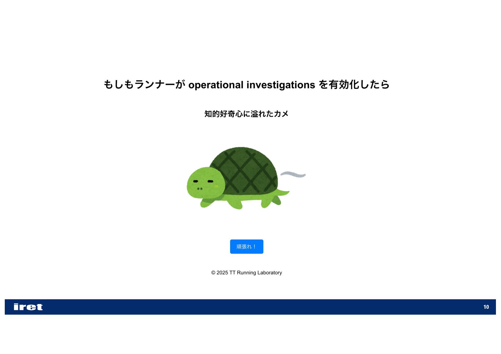もしもマラソンランナーが operational investigations を有効化したら 8