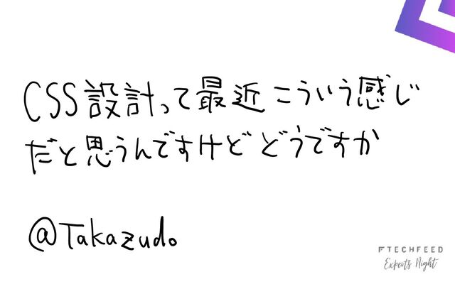 CSS設計って最近こういう感じだと思うんですけどどうですかという話です。BEM、CSS Modules、CSS in JS、Tailwind CSSとか色々ありますがどういうふうに捉えればよいのだろうという内容でした。