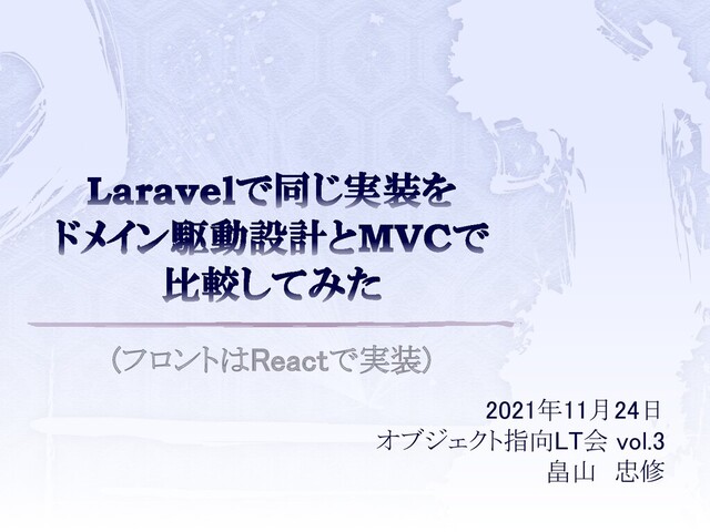 (フロントはReactで実装) 2021年11月24日 オブジェクト指向LT会 vol.3 畠山 忠修