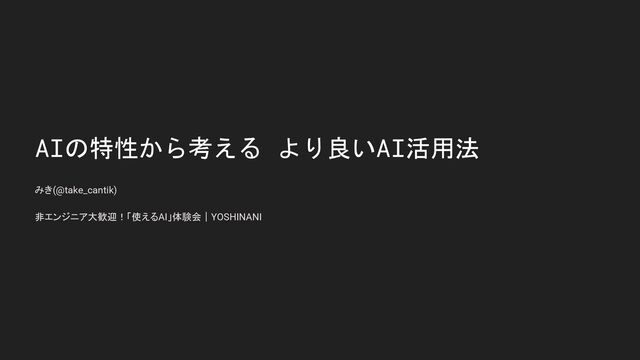 AIの特性から考える より良いAI活用法 みき(@take_cantik) 非エンジニア大歓迎!「使えるAI」体験会|YOSHINANI