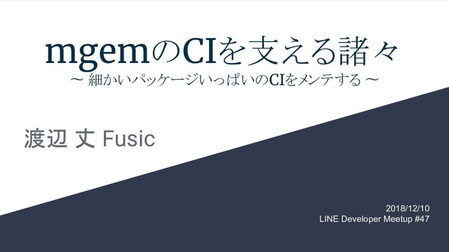 mgemのCIを支える諸々 〜 細かいパッケージいっぱいのCIをメンテする 〜 渡辺 丈 Fusic 2018/12/10 LINE Developer