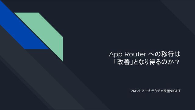 フロントアーキテクチャ改善 NIGHT App Router への移行は 「改善」となり得るのか?