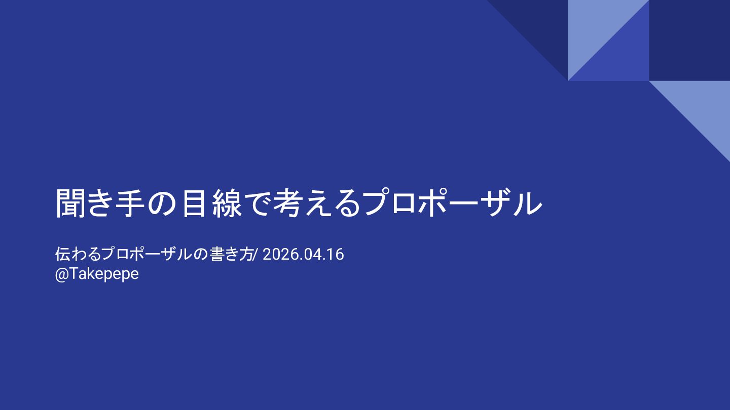 聞き手の目線で考えるプロポーザル 伝わるプロポーザルの書き方/ 2026.04.16 @Takepepe