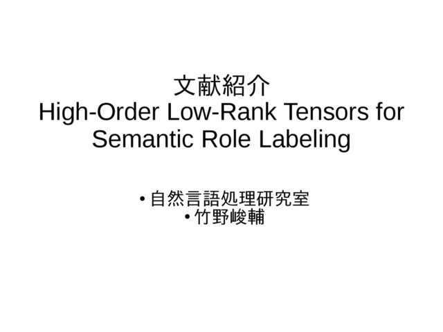 Tao Lei and Yuan Zhang. 2015. High-Order Low-Rank Tensors for Semantic Role Labeling. In HLT-NAACL 2015 - Human Language Technology Conference of the North American Chapter of the Association of Computational Linguistics, Proceedings of the Main Conference, pages 1150–1160