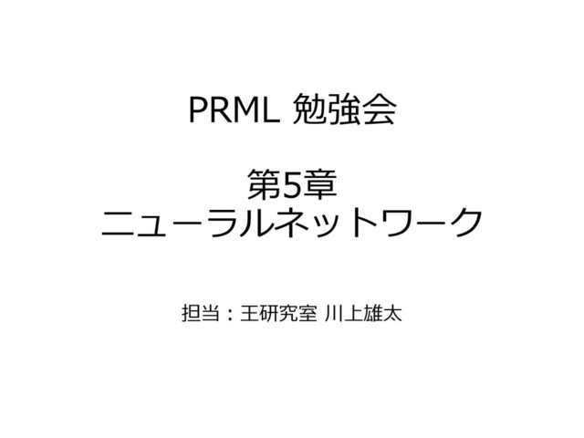 PRML 勉強会 第5章 ニューラルネットワーク 担当:王研究室 川上雄太