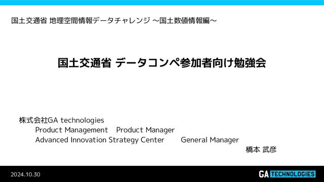 2024/10/30(水)開催の国土交通省 データコンペ参加者向け勉強会の資料です。 シラバスや資料・データ一式(講義動画含む)を公開していますので、以下リンクを参照ください。