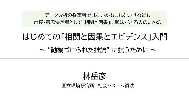 [email protected] (H. Nishiura). 1 These authors contributed equally. The Lancet Regional Health - Western Pacific 2022;28: 100571 Published online 11 August 2022 https://doi.org/10.1016/j. lanwpc.2022.100571 www.thelancet.com Vol 28 November, 2022 1 Articles 感染症疫学の数理モデル計算に基づき 「新型コロナワクチンの接種により 死亡者が約18000人減少」 Kayano et al. (2022) https://doi.org/10.1016 /j.lanwpc.2022.100571 本日は主に統計的因果推論の話をベースにお話します