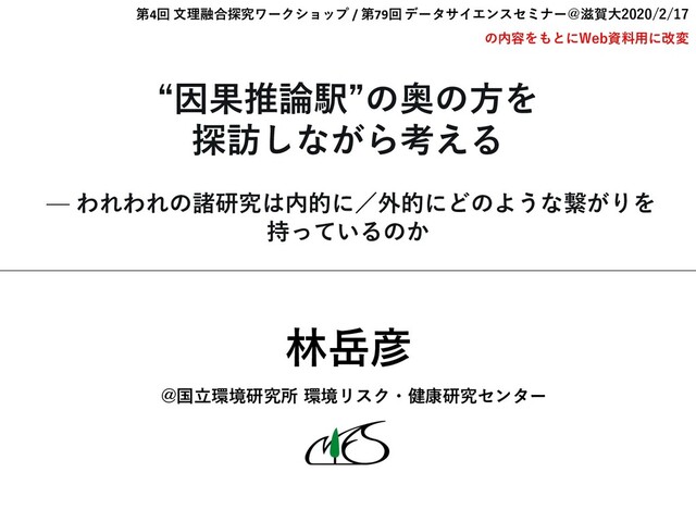 題目:“因果推論駅”の奥の方を探訪しながら考える — われわれの諸研究は内的に/外的にどのような繋がりを持っているのか