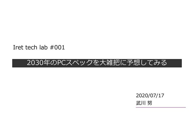 2030年のPCスペックを⼤雑把に予想してみる 武川 努 2020/07/17 Iret tech lab #001