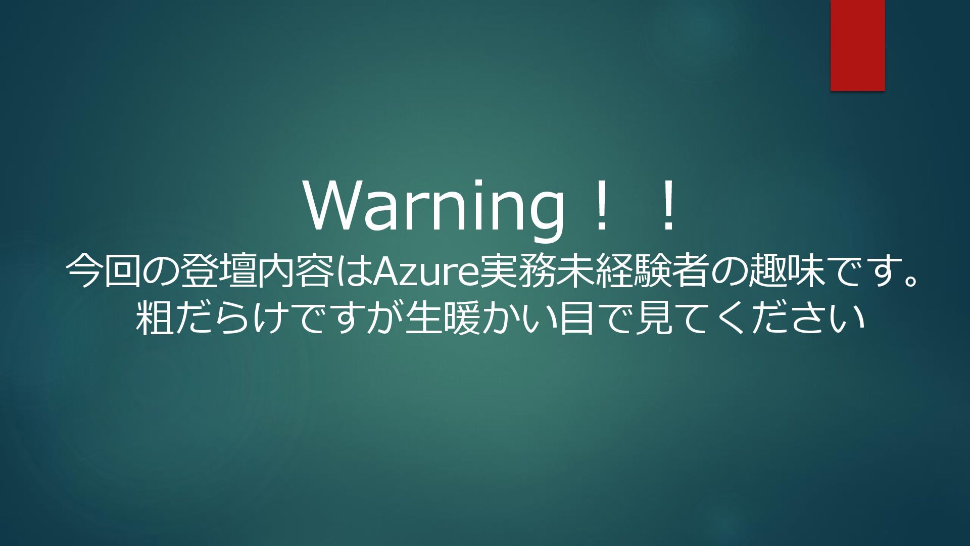 Warning!! 今回の登壇内容はAzure実務未経験者の趣味です。 粗だらけですが生暖かい目で見てください
