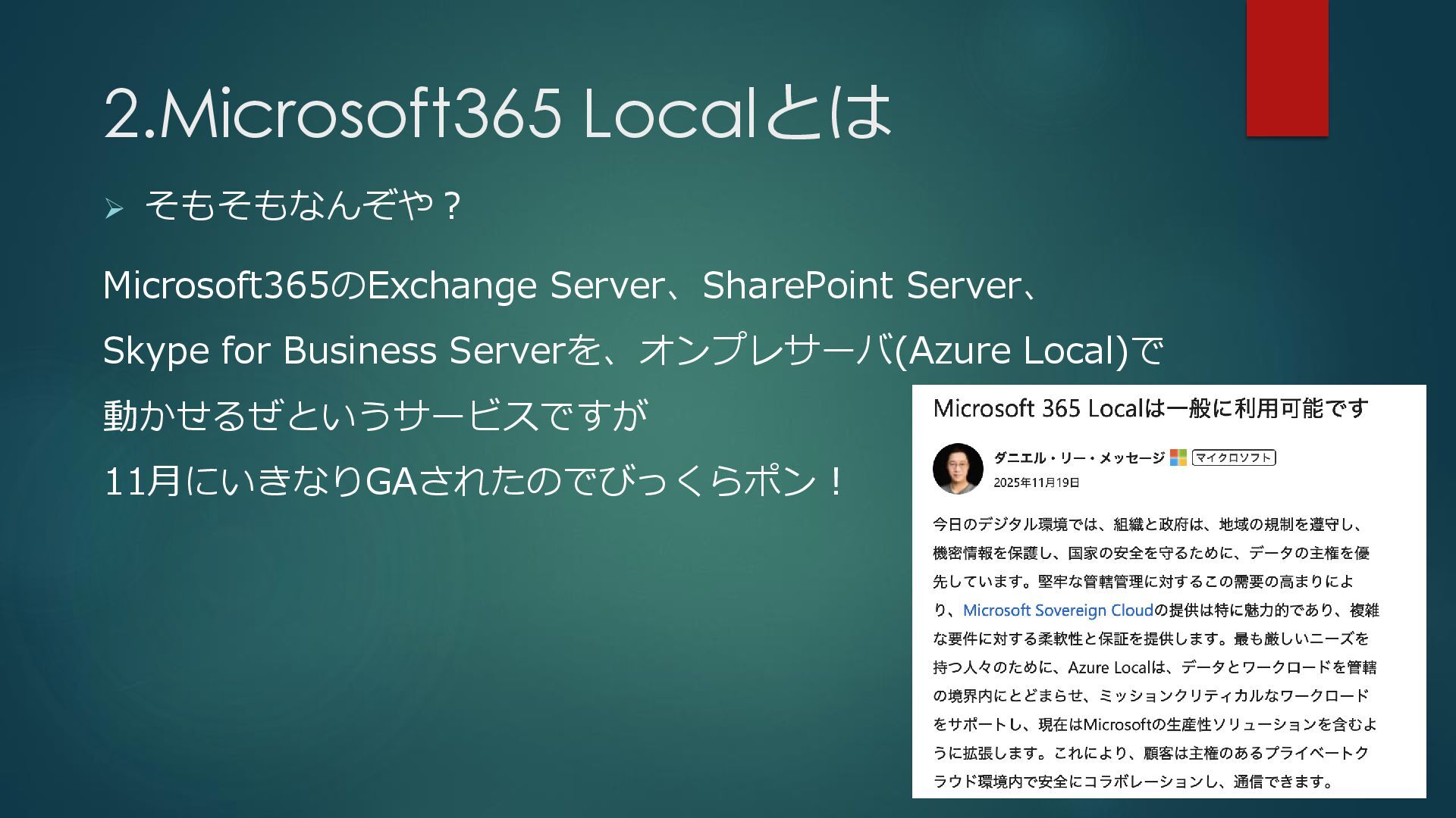 2.Microsoft365 Localとは ➢ そもそもなんぞや? Microsoft365のExchange Server、SharePoint Server、 Skype for Business
