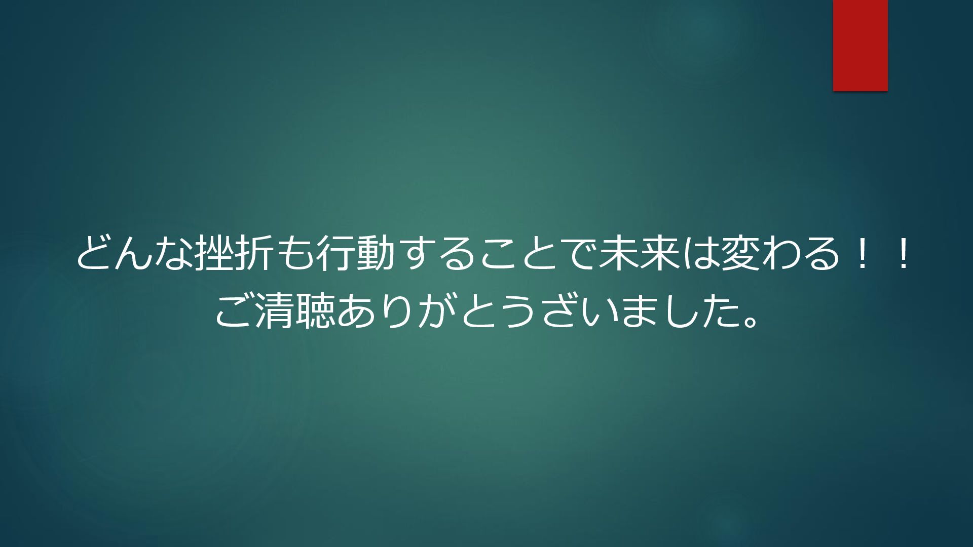 どんな挫折も行動することで未来は変わる!! ご清聴ありがとうざいました。