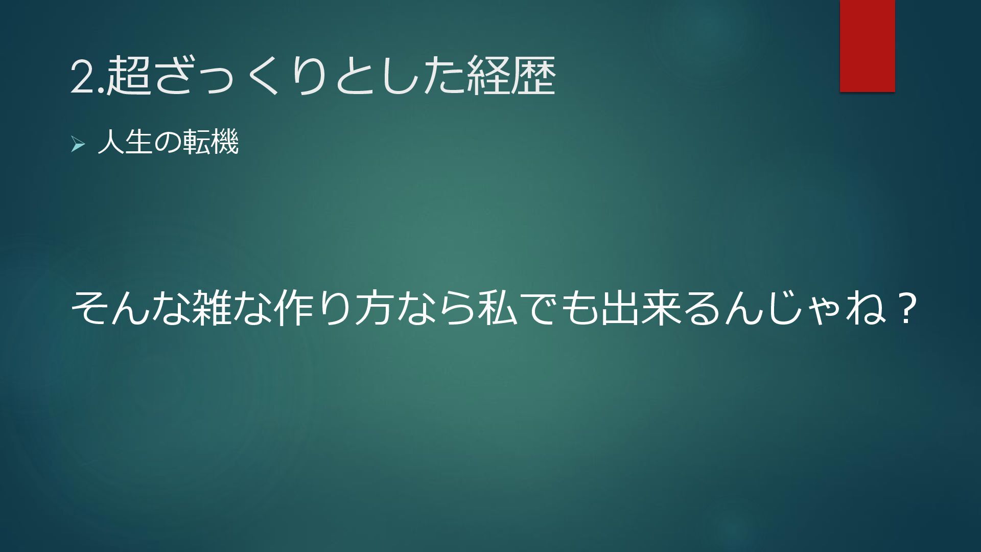 2.超ざっくりとした経歴 ➢ 人生の転機 そんな雑な作り方なら私でも出来るんじゃね?