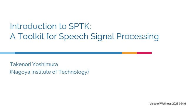 The Speech Signal Processing Toolkit (SPTK) is an open-source suite of tools for speech signal processing, including speech analysis and synthesis. It has been actively maintained and widely used in the speech processing community since its initial release in 1998. This lecture introduces the core concepts of SPTK, along with a brief overview of the fundamentals of speech signal processing. In addition, a differentiable extension of SPTK, called diffsptk, is also introduced. Designed for integration with deep learning workflows, diffsptk helps bridge the gap between classical signal processing and modern neural network architectures.