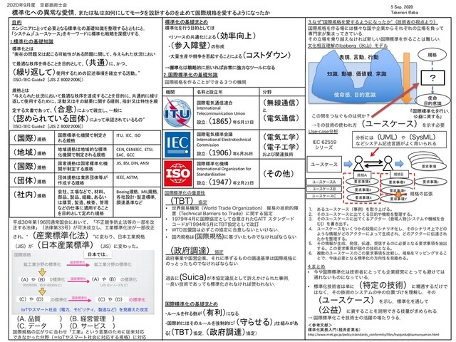 標準化への異常な愛情,または私は如何にしてモータを設計するのを止めて国際規格を愛するようになったか 5 Sep. 2020 Takenori Baba ݄ ژٕज़࢜ձ 1.標準化の基礎知識 標準化とは