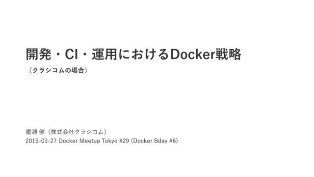 ኍ݈ʢגࣜձࣾΫϥγίϜʣ %PDLFS.FFUVQ5PLZP %PDLFS#EBZ ։ൃɾ$*ɾӡ༻ʹ͓͚Δ%PDLFSઓུ ʢΫϥγίϜͷ߹ʣ