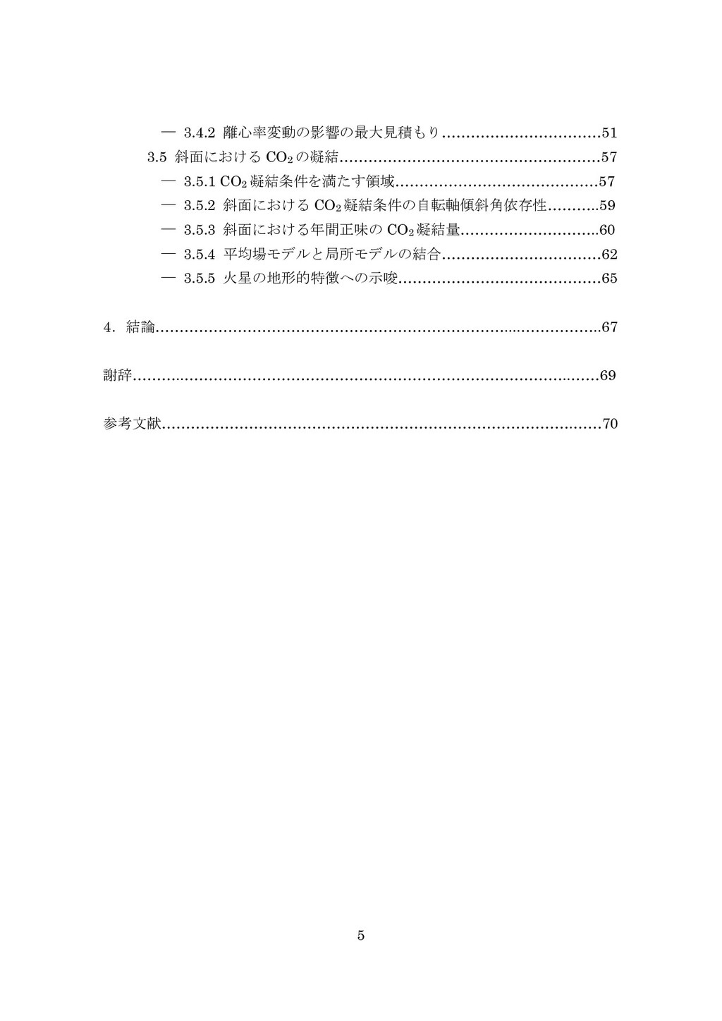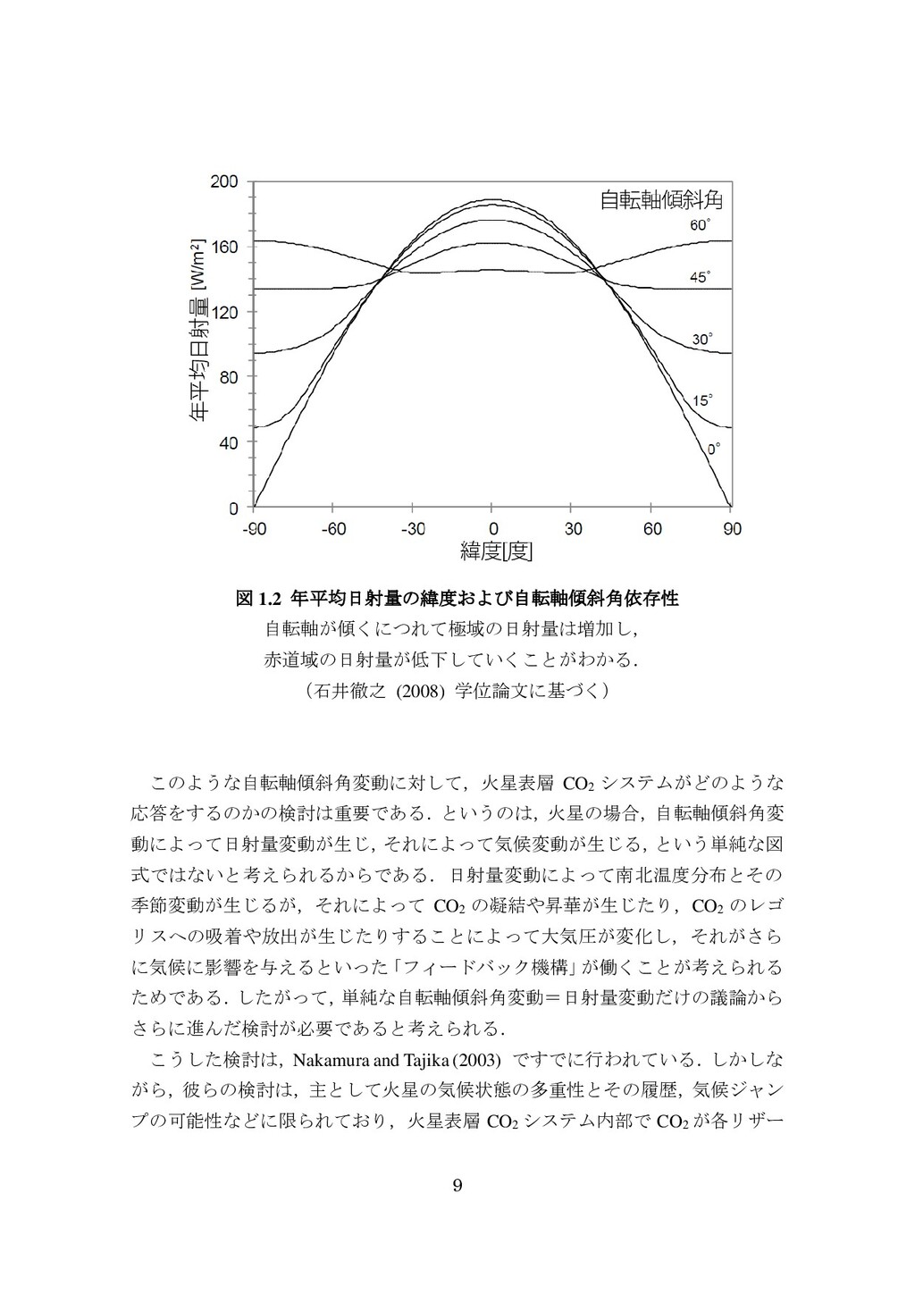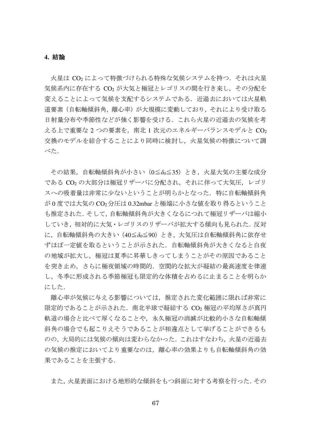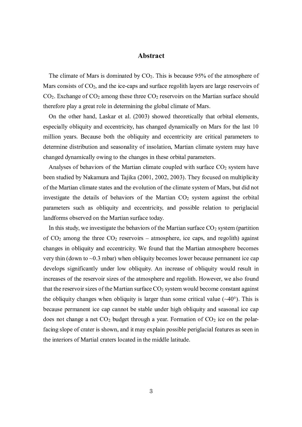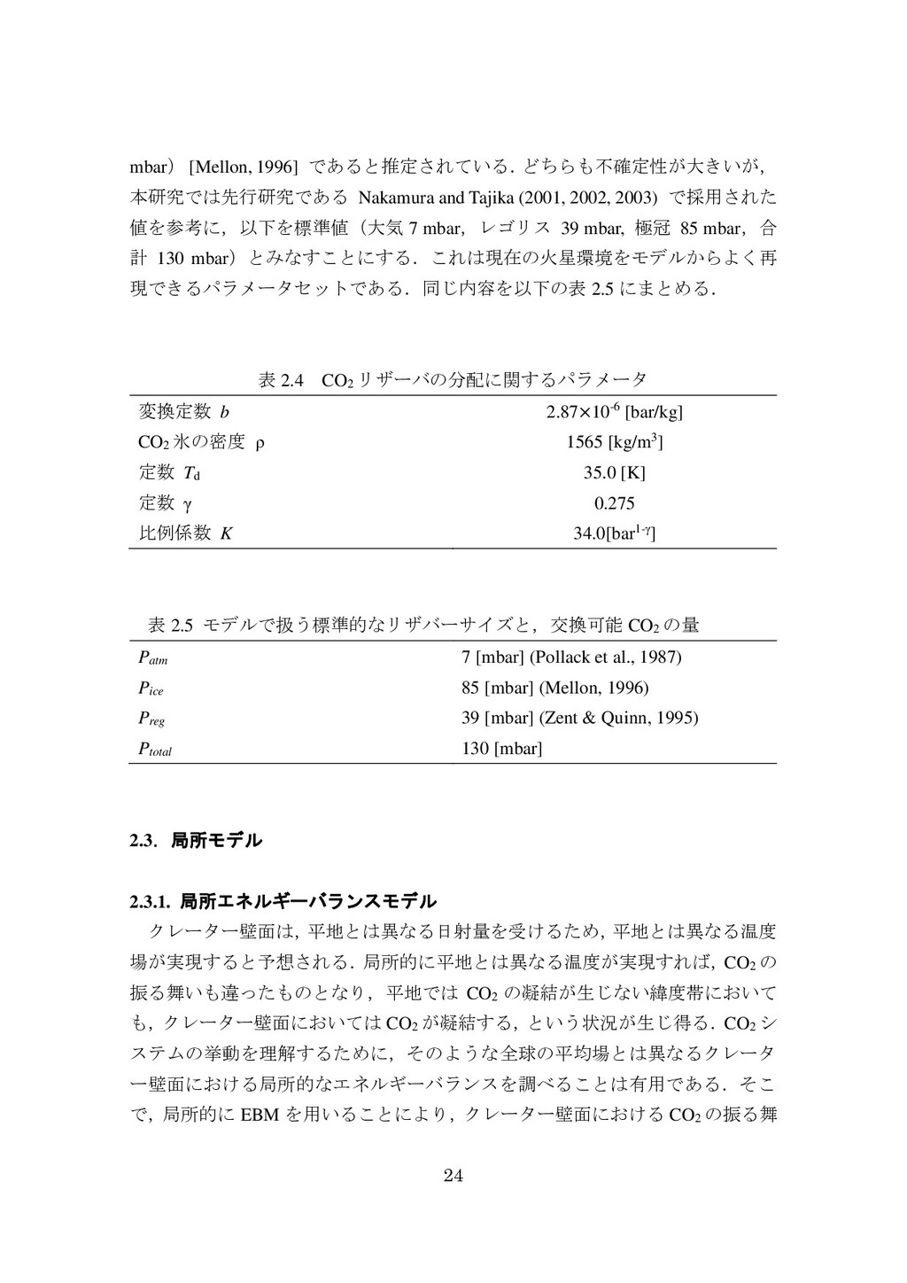 adsorbed H2O and CO2 between the regolith and atmosphere of Mars caused by changes in surface insolation. J. Geophys. Res. 79(24), 3397-3402. Fanale, F. P., W. B. Banerdt, R. S. Saunders, et al. (1982) Seasonal carbon dioxide exchange between the regolith and atmosphere of Mars: Experimental and theoretical studies. J. Geophys. Res. 87(B12), 10215-10225. Gierasch, P. J. & O. B. Toon (1973) Atmospheric pressure variation and the climate of Mars. J. Atmos. Sci. 30(8), 1502-1508. Head, J. W., H. Hiesinger, M. A. Ivanov, et al. (1999), Possible ancient oceans on Mars: evidence from Mars Orbiter Laser Altimeter data. Science 286(5447), 2134-2137. Hess, S., J. Ryan, J. Tillman, et al. (1980) The annual cycle of pressure on Mars measured by Viking Landers 1 and 2. Geophys. Res. Lett. 7(3), 197-200. 石井徹之 (2008) 火星のアルバ・パテラ地域における衝突クレータの統計学的 および形態学的解析. PhD thesis, 東京大学. Kasting, J. F. (1997) Warming early Earth and Mars. Science 276(5316), 1213-1213. Kurahashi-Nakamura, T. & E. Tajika (2006) Atmospheric collapse and transport of carbon dioxide into the subsurface on early Mars. Geophys. Res. Lett. 33(18), L18205. Laskar, J., B. Levrard & J. F. Mustard (2002) Orbital forcing of the Martian polar layered deposits. Nature 419(6905), 375-377. Laskar, J. & P. Robutel (1993) The chaotic obliquity of the planets. Nature 361(6413), 608-612.