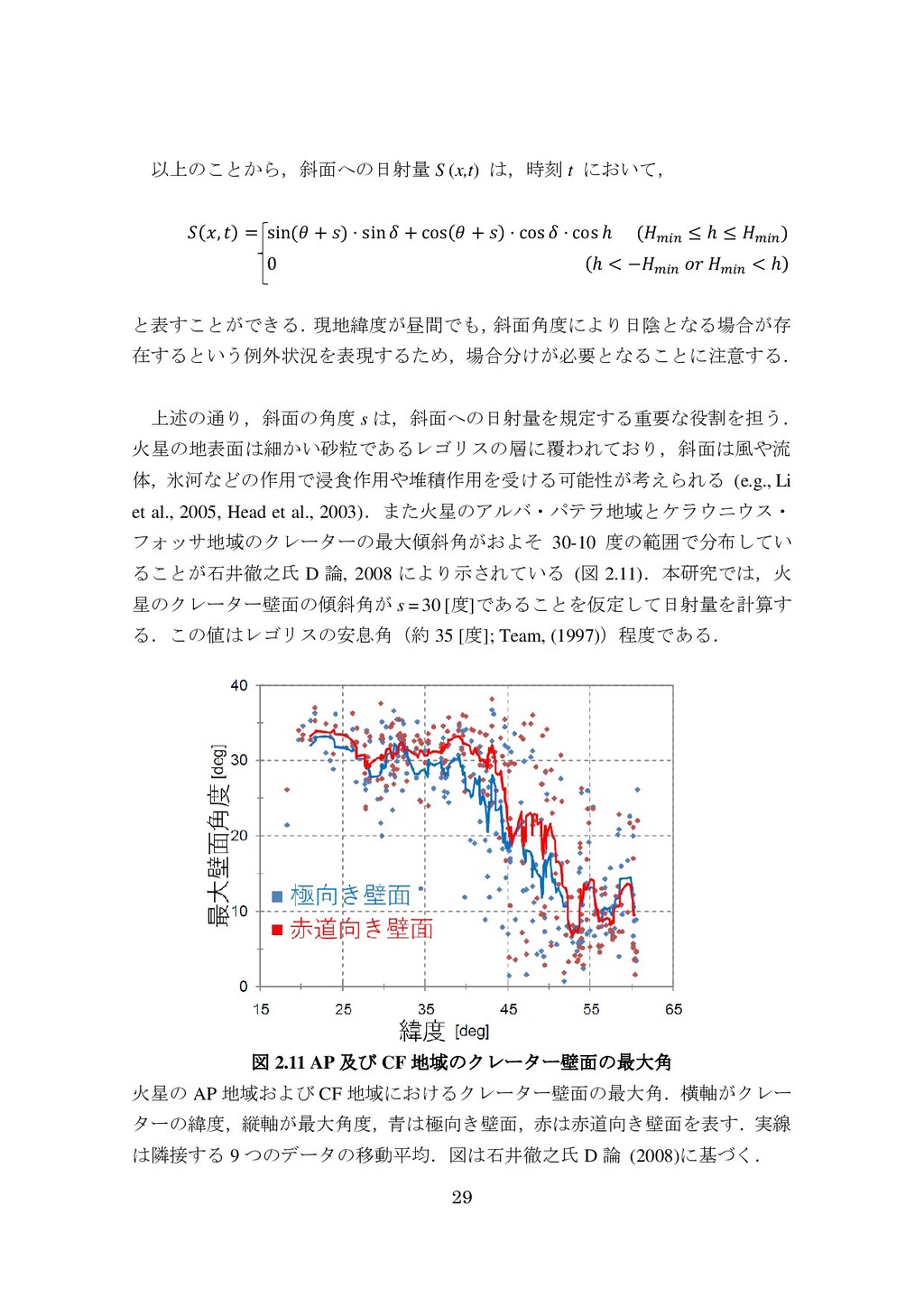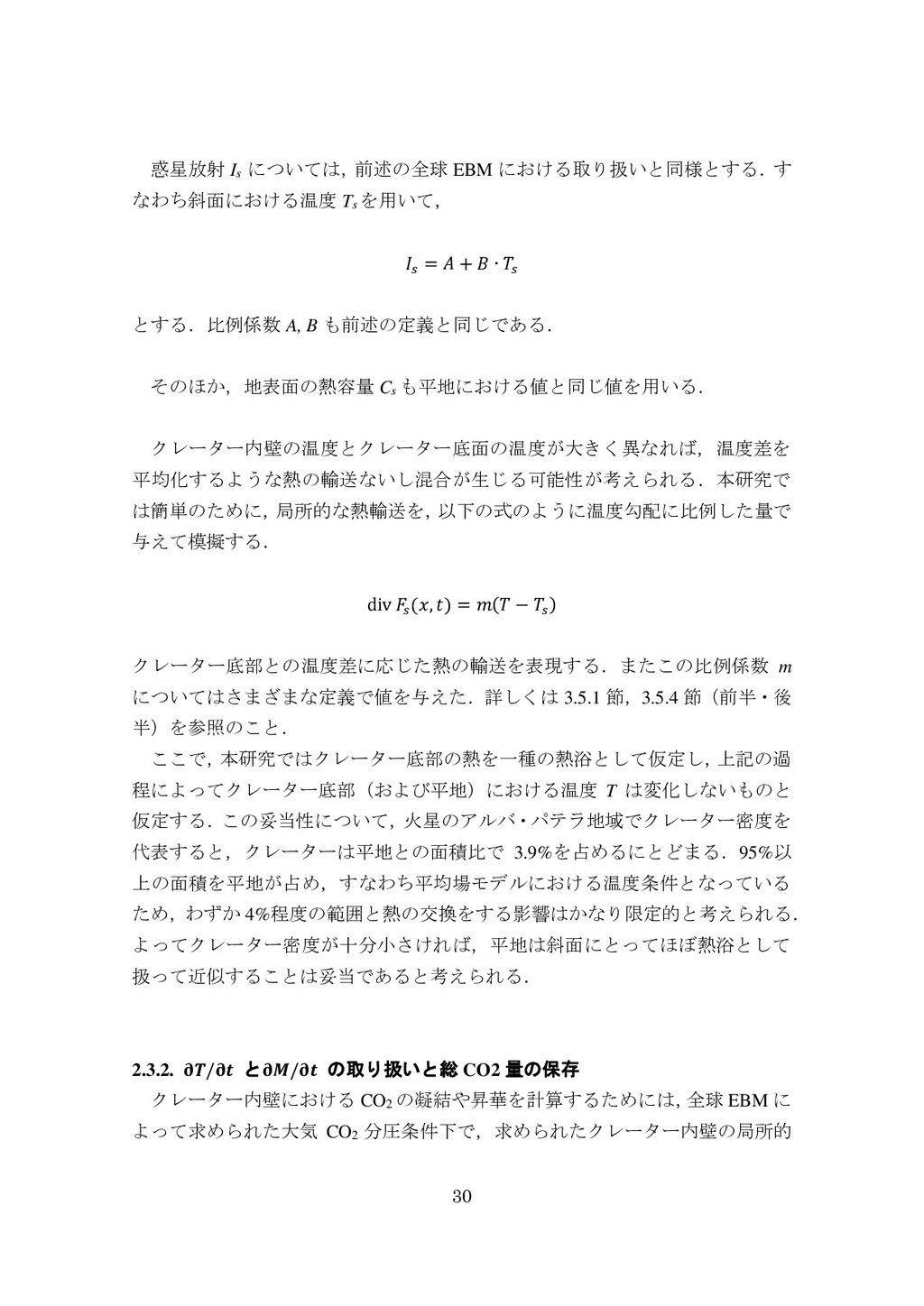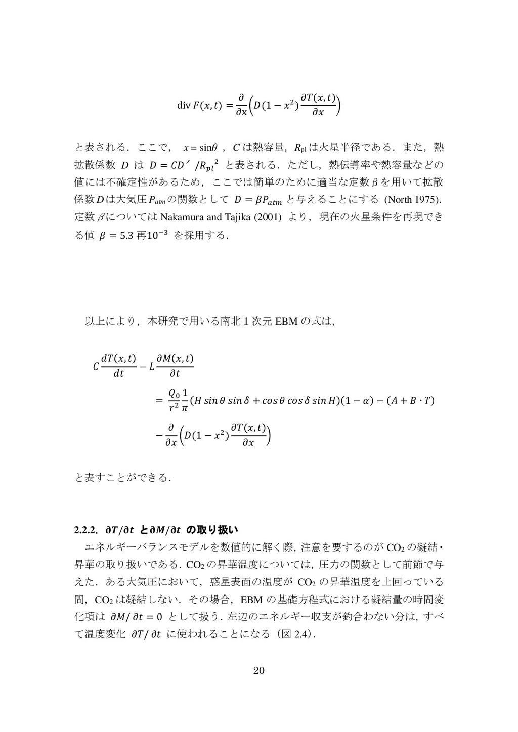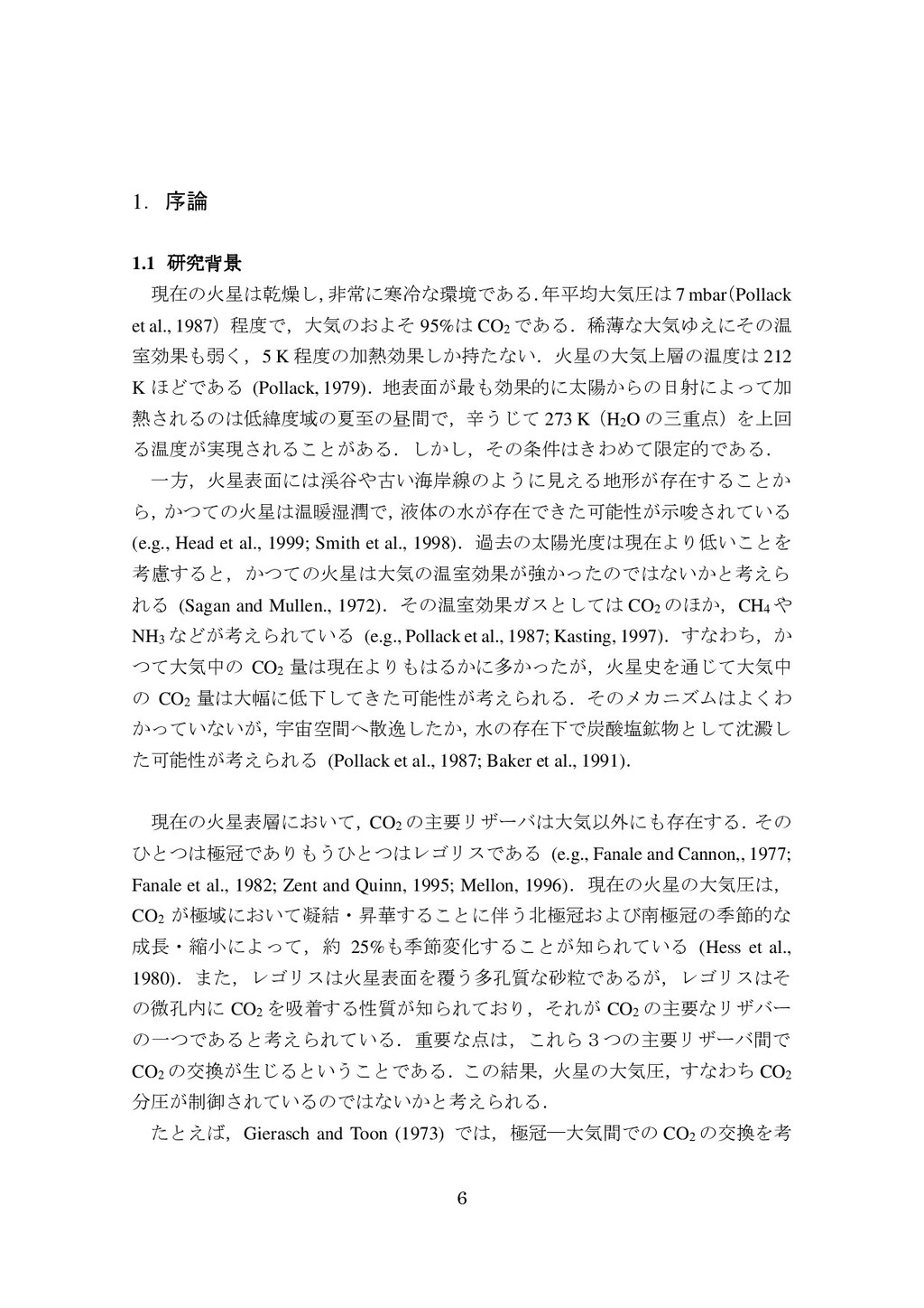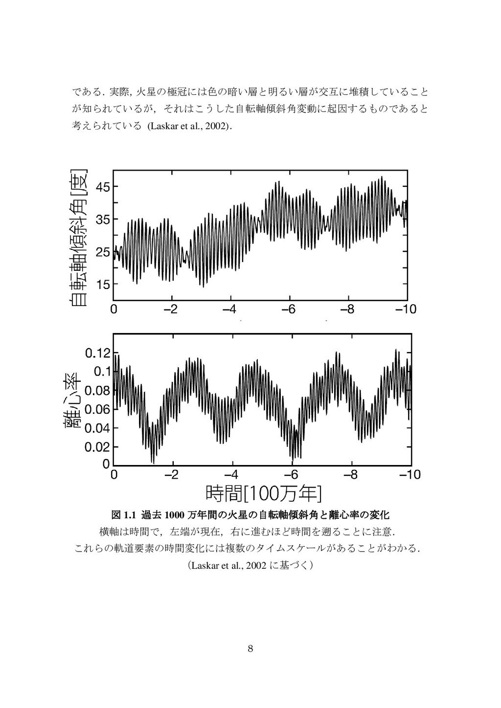 adsorbed H2O and CO2 between the regolith and atmosphere of Mars caused by changes in surface insolation. J. Geophys. Res. 79(24), 3397-3402. Fanale, F. P., W. B. Banerdt, R. S. Saunders, et al. (1982) Seasonal carbon dioxide exchange between the regolith and atmosphere of Mars: Experimental and theoretical studies. J. Geophys. Res. 87(B12), 10215-10225. Gierasch, P. J. & O. B. Toon (1973) Atmospheric pressure variation and the climate of Mars. J. Atmos. Sci. 30(8), 1502-1508. Head, J. W., H. Hiesinger, M. A. Ivanov, et al. (1999), Possible ancient oceans on Mars: evidence from Mars Orbiter Laser Altimeter data. Science 286(5447), 2134-2137. Hess, S., J. Ryan, J. Tillman, et al. (1980) The annual cycle of pressure on Mars measured by Viking Landers 1 and 2. Geophys. Res. Lett. 7(3), 197-200. 石井徹之 (2008) 火星のアルバ・パテラ地域における衝突クレータの統計学的 および形態学的解析. PhD thesis, 東京大学. Kasting, J. F. (1997) Warming early Earth and Mars. Science 276(5316), 1213-1213. Kurahashi-Nakamura, T. & E. Tajika (2006) Atmospheric collapse and transport of carbon dioxide into the subsurface on early Mars. Geophys. Res. Lett. 33(18), L18205. Laskar, J., B. Levrard & J. F. Mustard (2002) Orbital forcing of the Martian polar layered deposits. Nature 419(6905), 375-377. Laskar, J. & P. Robutel (1993) The chaotic obliquity of the planets. Nature 361(6413), 608-612.