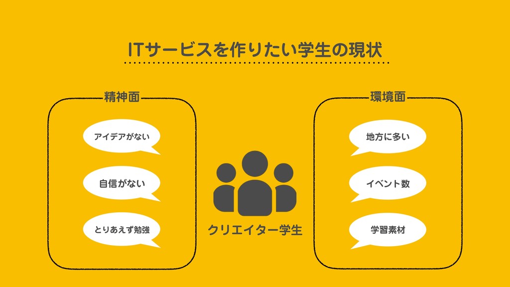 ΞΠσΞ͕ͳ͍ *5αʔϏεΛ࡞Γֶ͍ͨੜͷݱঢ় ਫ਼ਆ໘ ࣗ৴͕ͳ͍ ͱΓ͋͑ͣษڧ ڥ໘ ํʹଟ͍ Πϕϯτ ֶशૉࡐ ΫϦΤΠλʔֶੜ