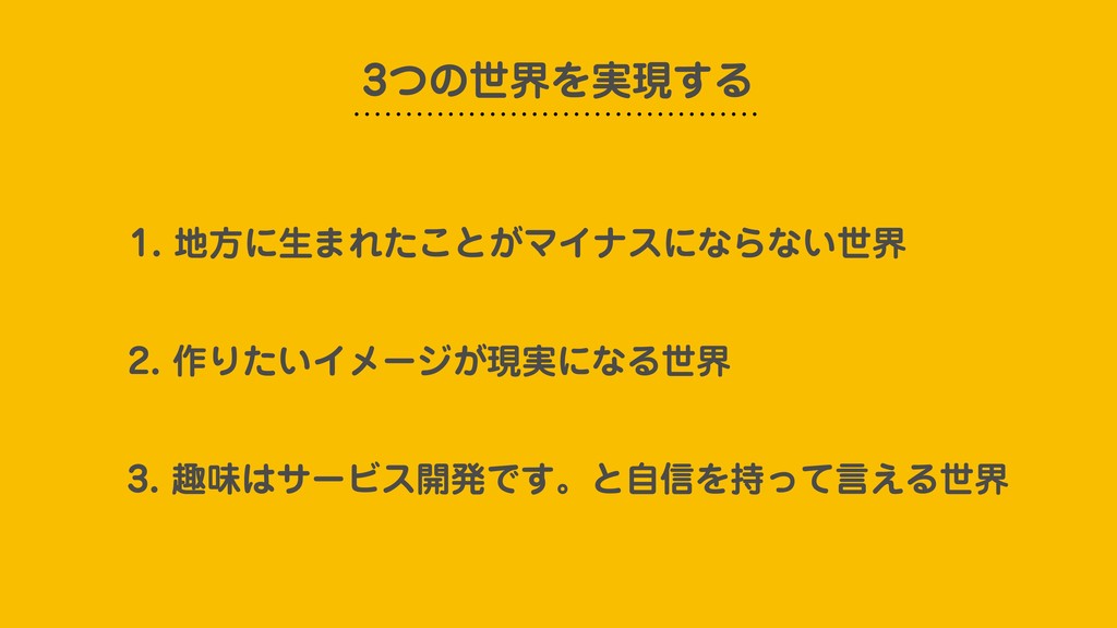 ͭͷੈքΛ࣮ݱ͢Δ ํʹੜ·Εͨ͜ͱ͕ϚΠφεʹͳΒͳ͍ੈք ࡞Γ͍ͨΠϝʔδ͕ݱ࣮ʹͳΔੈք झຯαʔϏε։ൃͰ͢ɻͱࣗ৴Λ࣋ͬͯݴ͑Δੈք
