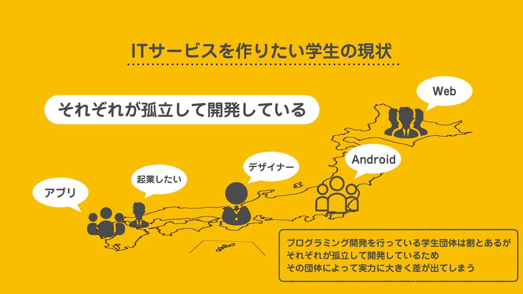 ΞϓϦ ىۀ͍ͨ͠ σβΠφʔ "OESPJE 8FC *5αʔϏεΛ࡞Γֶ͍ͨੜͷݱঢ় ͦΕͧΕ͕ݽཱͯ͠։ൃ͍ͯ͠Δ ϓϩάϥϛϯά։ൃΛߦ͍ͬͯΔֶੜஂମׂͱ͋Δ͕ ͦΕͧΕ͕ݽཱͯ͠։ൃ͍ͯ͠ΔͨΊ ͦͷஂମʹΑ࣮ͬͯྗʹେ͖͕ࠩ͘ग़ͯ͠·͏
