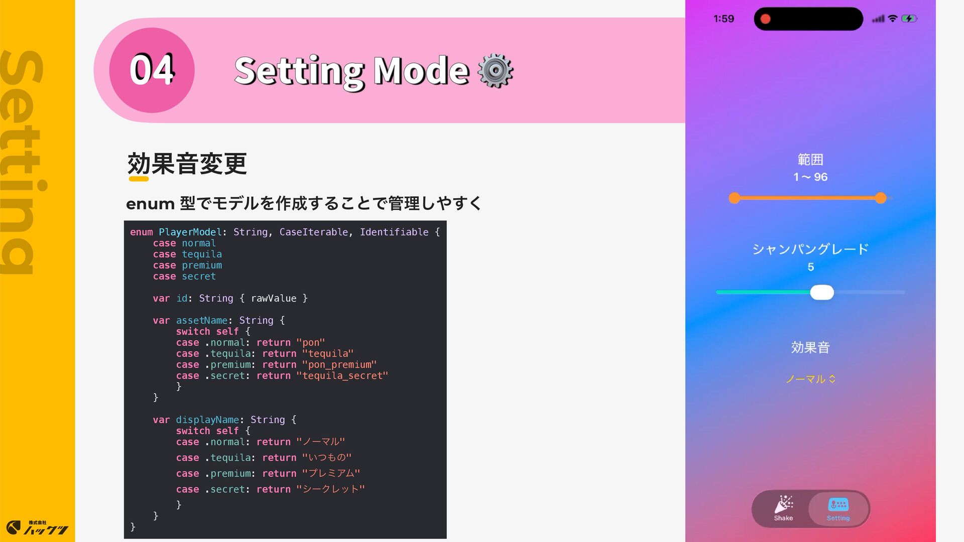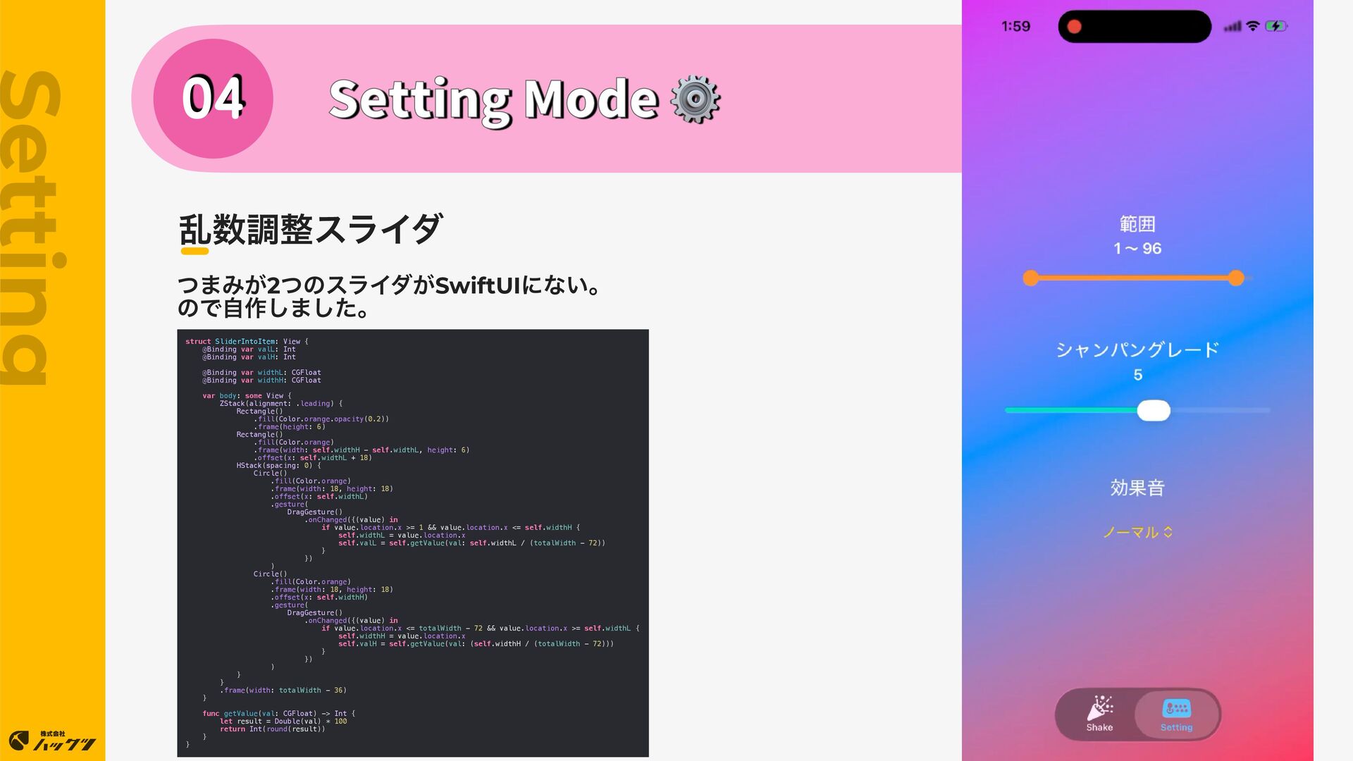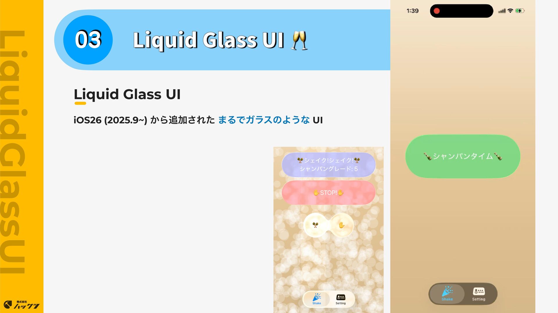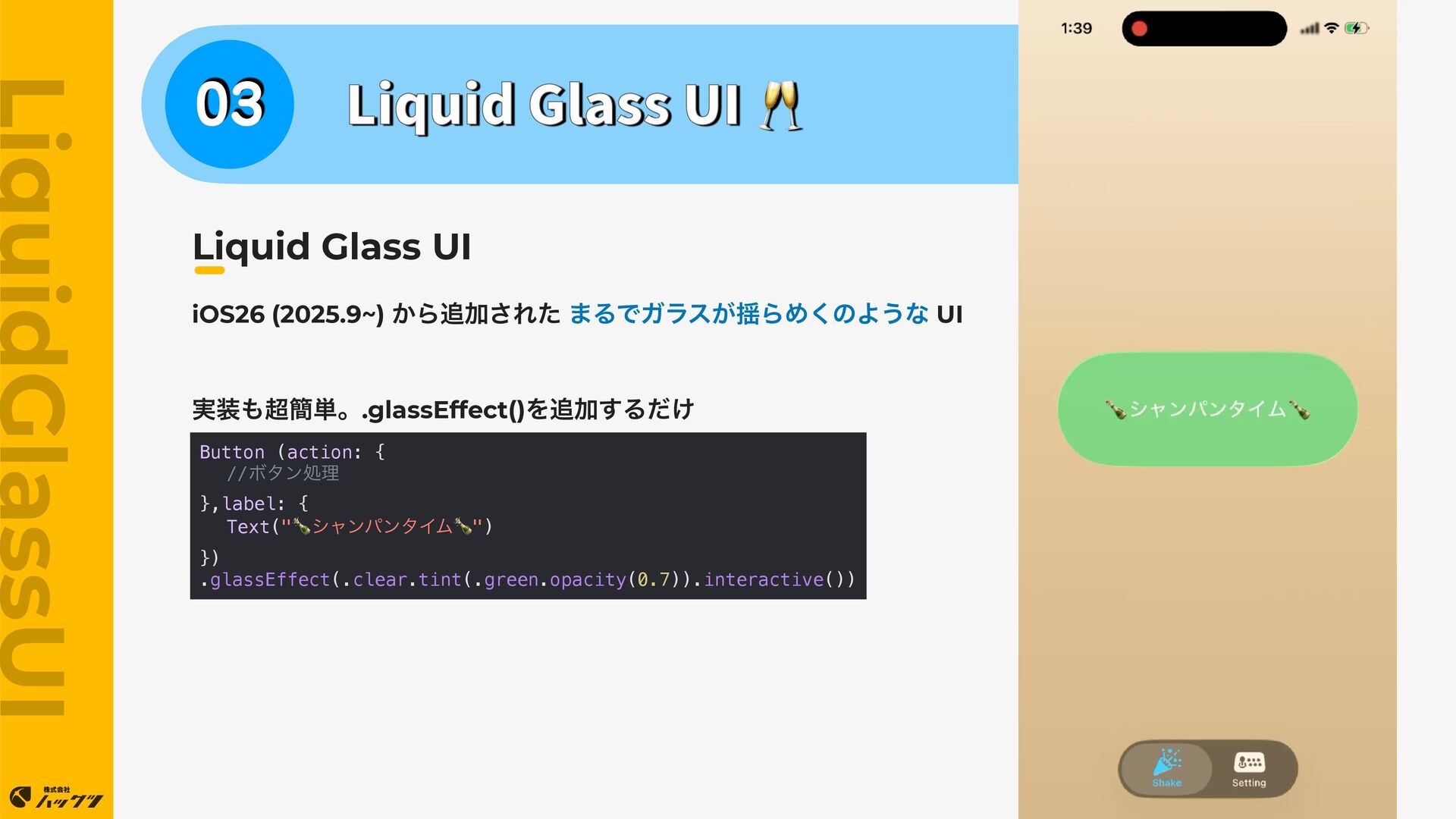 + bubbles[i].phase) * 0.4 let dt = lastTime.map { date.timeIntervalSince($0) } ?? 0 var count = Int(abs(motionManager.spawnRate * dt)) λΠϜΠϯλʔόϧ(dt) * ࿈ଓͰৼͬͨճ(spawnRate) Ͱ๐ͷݸΛཧ ๐ͷΞχϝʔγϣϯ for _ in 0..<count { bubbles.append( BubbleModel( x: .random(in: 0…size.width), y: size.height + CGFloat.random(in: 0...bottomBand), radius: .random(in: 10...20), speed: .random(in: 40...400), phase: .random(in: 0...(.pi * 2)) ) ) } ๐ͷαΠζɾɾ༳Εํ ΛϥϯμϜʹ ఆظߋ৽ͯ͠๐Λඳը TimelineView(.animation) { timeline in GeometryReader { geo in Canvas { context, _ in draw(context: context) } AIʹؙ͛͠·ͨ͠