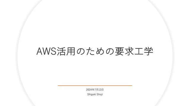 AWS活⽤のための要求⼯学 2024年7⽉13⽇ Shigeki Shoji