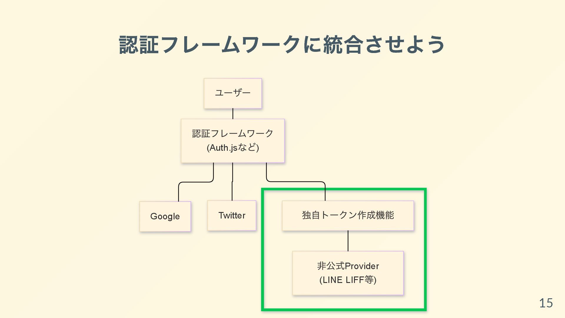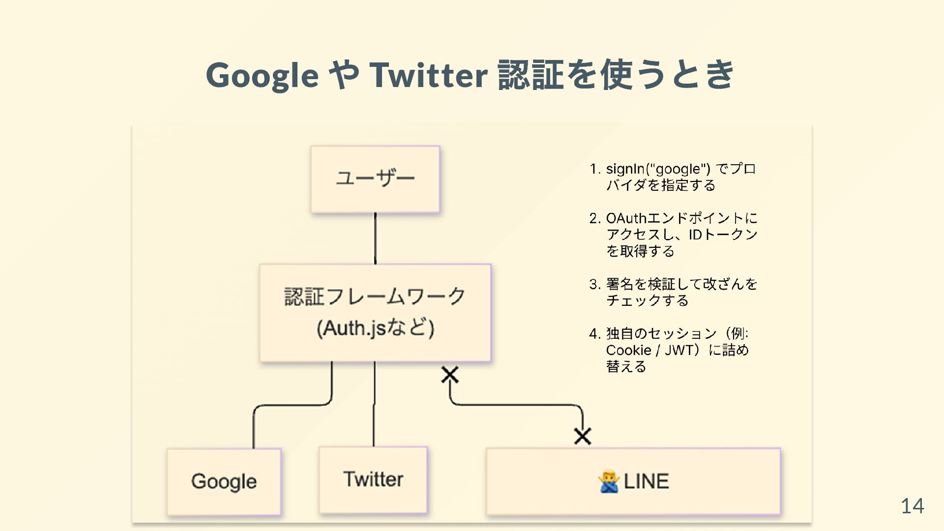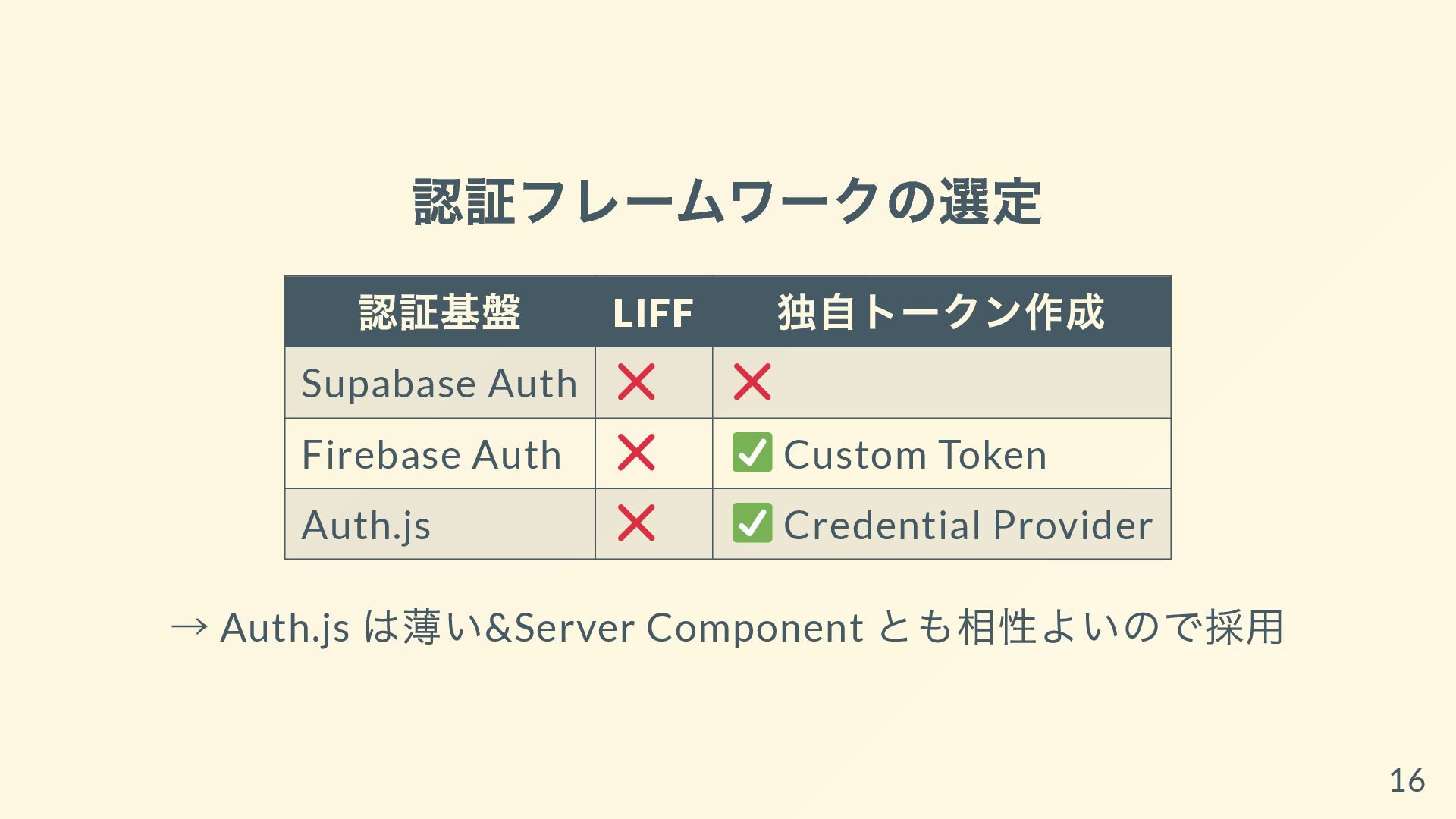 Firebaseへのトークン詰め替え手法は知られていても、Auth.jsへの詰め替え手法はまだサンプルが出回っていません。本資料ではその空白を埋めるべく、実装ステップや注意点をステップバイステップで解説しています。
