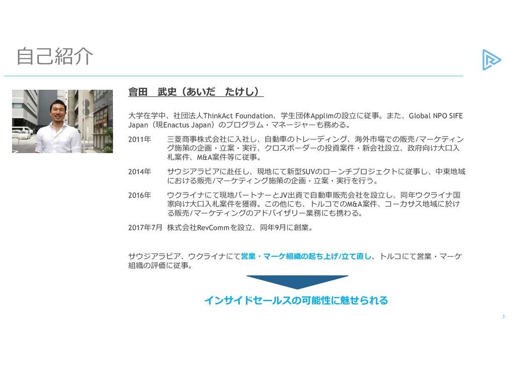 インサイドセールスの目的と効果、インサイドセールスからインサイトセールスに昇華させる5つのヒントなどに関するプレゼン。 2018年6月20日のセールスフォースドットコム社主催のインサイドセールス分科会にて発表したもの。