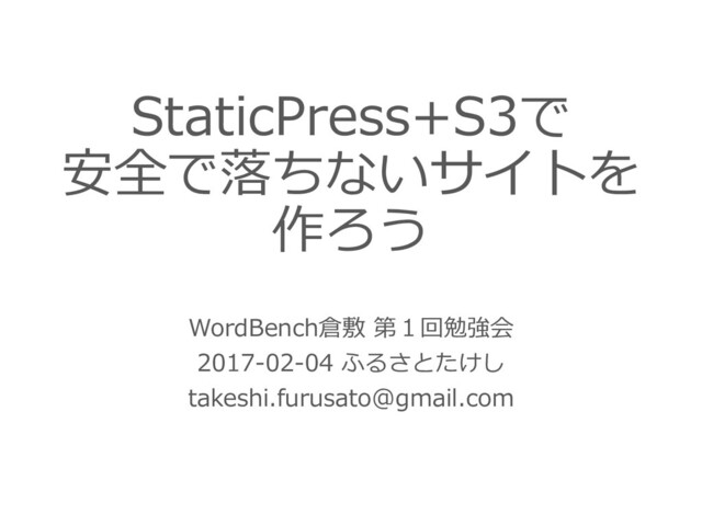20170204 WrodBench倉敷 第一回勉強会 StaticPress+S3で安全で落...