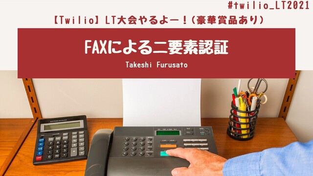 FAXによる⼆要素認証 TakeshiFurusato 【Twilio】LT⼤会やるよー!(豪華賞品あり) #twilio_LT2021