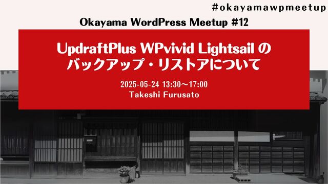 2025/05/24に開催された「Okayama WordPress Meetup #12 | そのバックアップ、本当に復元できますか? リストアやってみた!」で登壇した資料です。 WordPressプラグインによるバックアップとリストアとして、 ・UpdraftPlusの場合 ・WPvividの場合 ホスティングサービスによるバックアップとリストアとして ・AWS(Amazon Lightsail)の場合 についてお話しました。