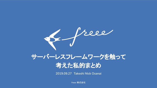 freee 株式会社 サーバーレスフレームワークを触って 考えた私的まとめ サーバーレスフレームワークを触って 考えた私的まとめ 2019.09.27 Takeshi Nick Osanai