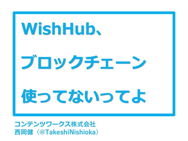 WishHub、 ブロックチェーン 使ってないってよ コンテンツワークス株式会社 西岡健(@TakeshiNishioka)