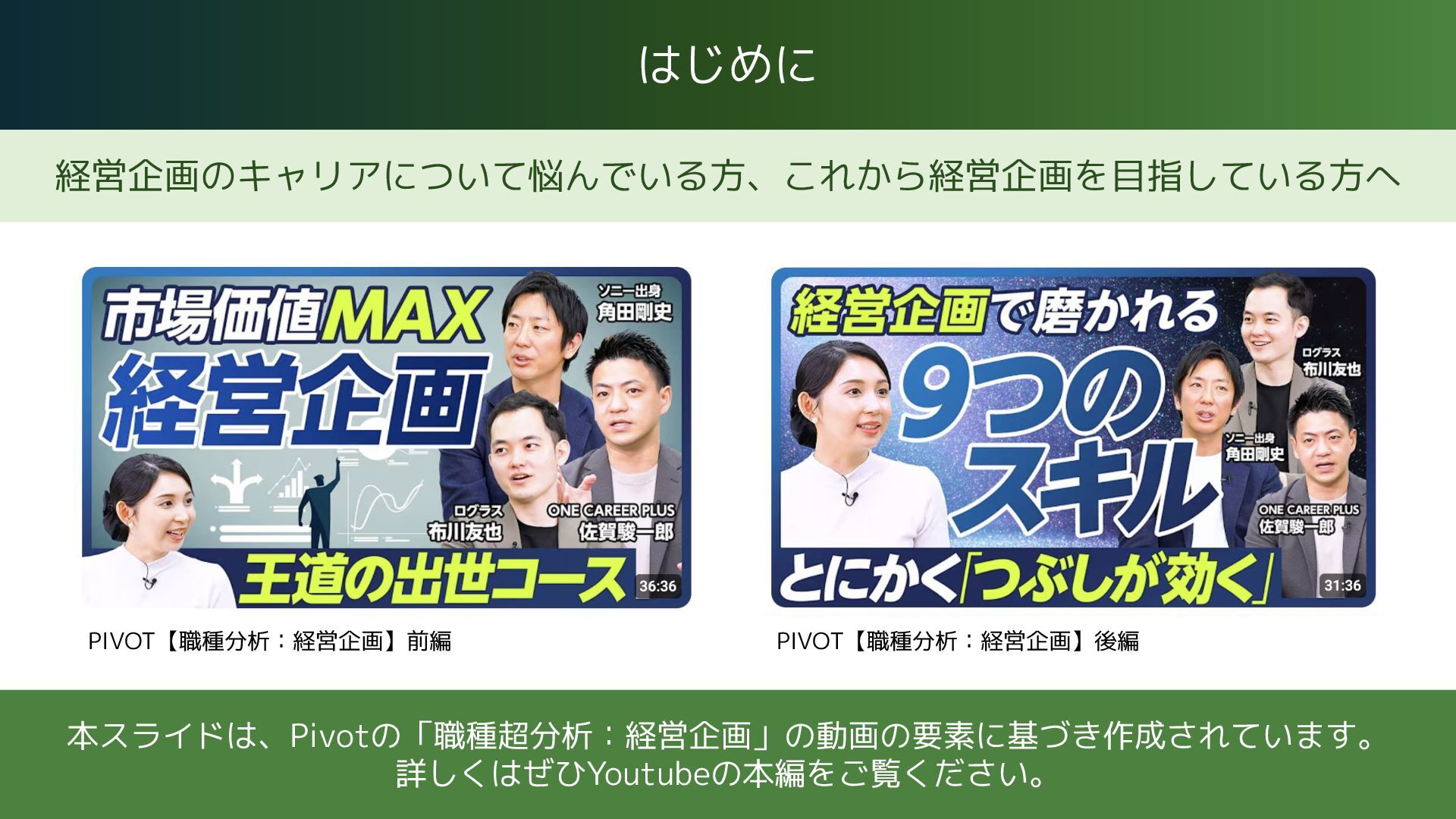PIVOT【職種分析:経営企画】前編 https://youtu.be/dyhWMy0S_DA