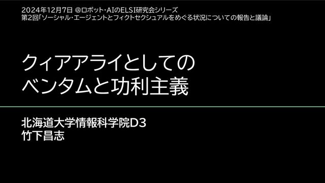 ◦ 誰かの快楽に対して不快に感じる→反感 16 Quinn, M. (2017). Jeremy Bentham on liberty of taste. History of European Ideas, 43(6), 614-627. 竹下昌志. (2023). 「人間とAI・ロボットの親密な関係の価値を擁護できるか?」. 『人工知能学会全国大会論文集 第 37 回 (2023)』. 一般社団法人 人工知能学会. 快楽主義:すべての快楽は等しく価値がある(竹下 2023) →嗜好の自由(liberty of taste)(Quinn 2017)