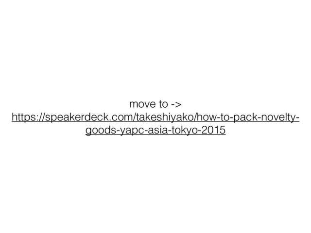 move to -> https://speakerdeck.com/takeshiyako/how-to-pack-novelty- goods-yapc-asia-tokyo-2015